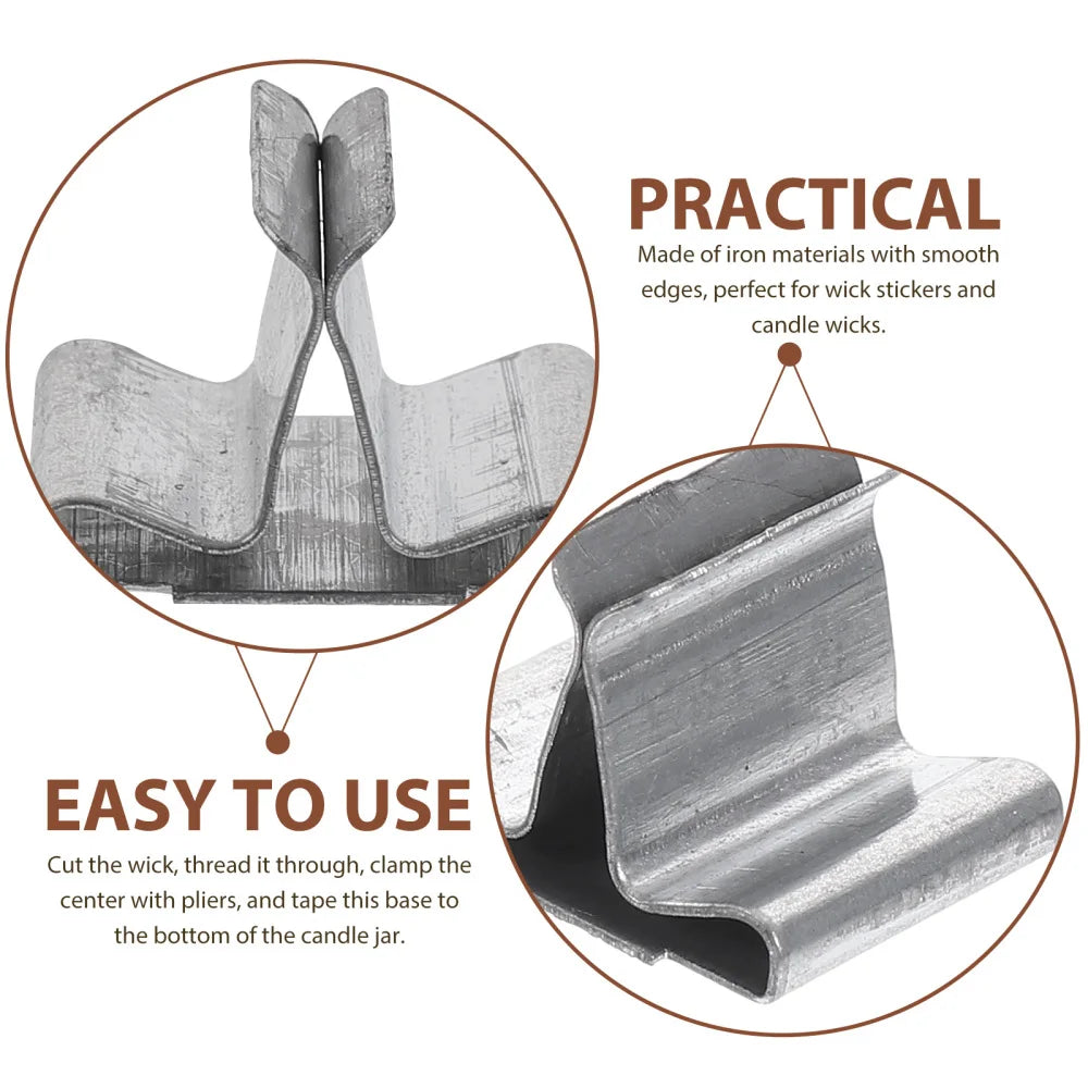 These metal candle wick tabs are essential supplies for DIY candle making. Designed to securely hold candle wicks in place, these iron wick base clips help keep the wick centered during wax pouring and burning, making the candle making process easier and more consistent.