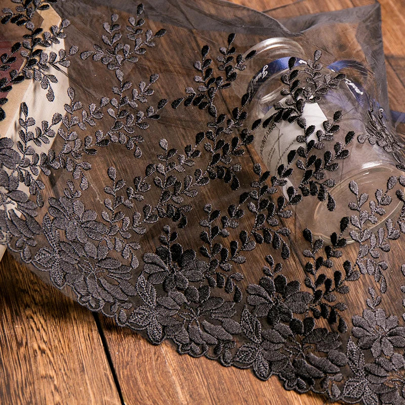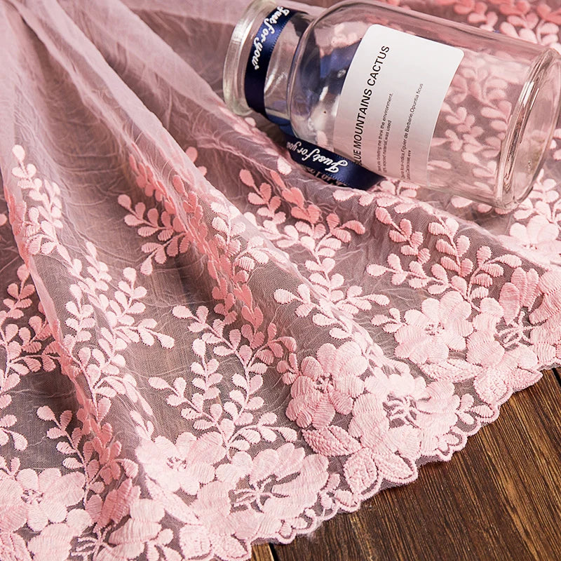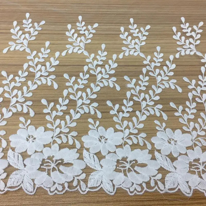 White Embroidered Lace Fabric 1 Yard Floral Mesh Lace Trim for Dress Sewing Wedding DIY Garment Decor