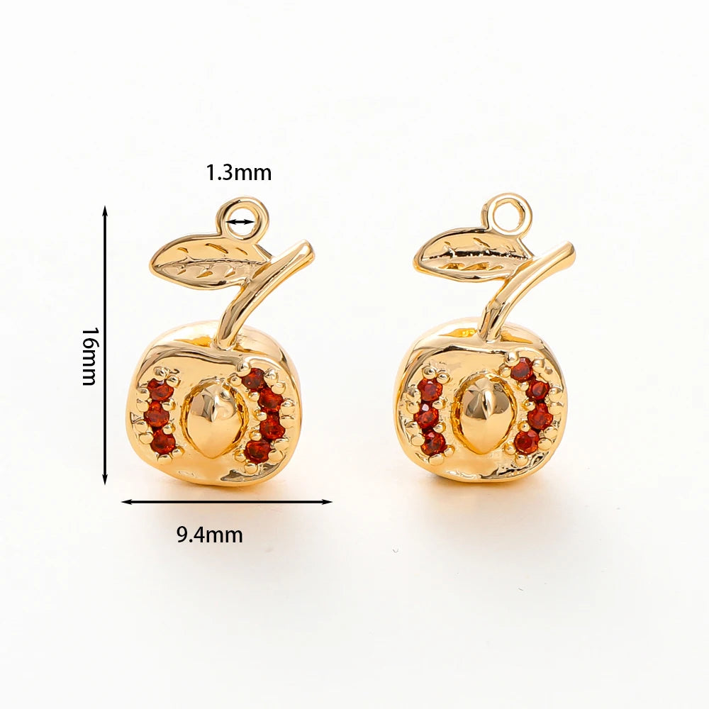 2pcs Strawberry Charms 18K Gold Plated Fruit Pendants Brass