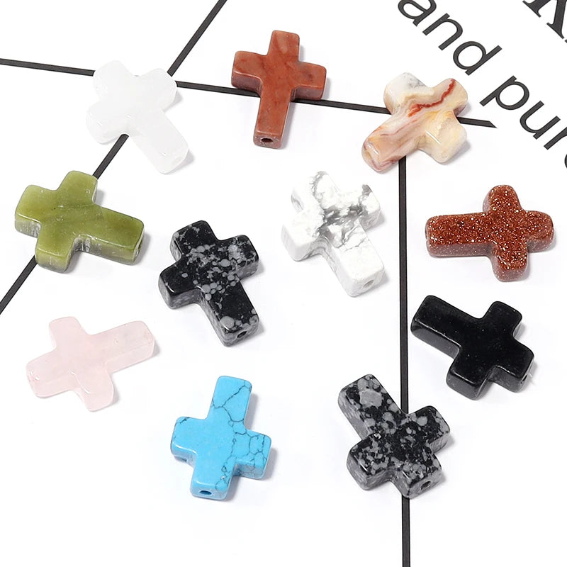 Each set includes 5 polished cross beads crafted from stone materials such as agate, quartz, turquoise-style stone, and other natural-look varieties. The smooth surface and defined cross shape make them perfect focal pieces for bracelets, necklaces, rosaries, and spiritual jewelry designs.